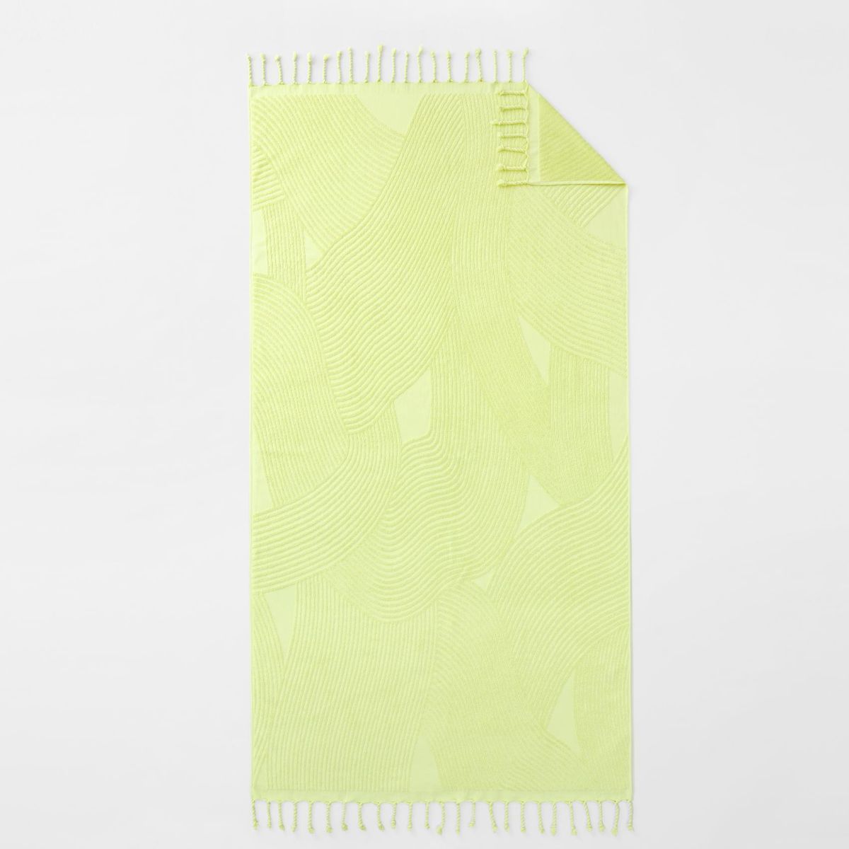 Northcove is a premium beach towel design, crafted in Turkey from 100% cotton. The lightweight design features a unique, textured swirl pattern with a dramatic high low texture, and twisted tassels on both ends.